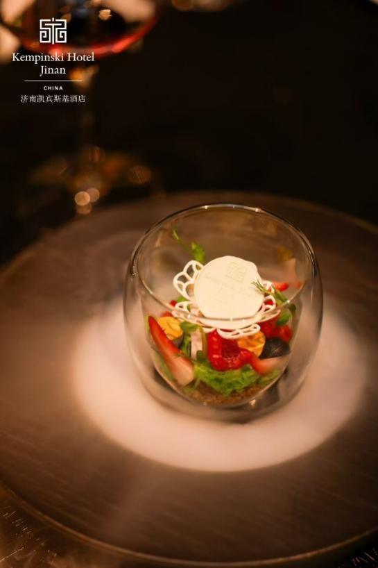济南凯宾斯基酒店厨师团队历经数月悉心研制,以华熙生物玻尿酸的晶润特质为创意,将可食用玻尿酸原材料融入菜品创造,从摆盘艺术、香气层次至口感磕碰,匠心打造6道中西结合的立异菜品,将四季景物本真与地域风味精华凝萃于方寸餐盘,部分菜品更经过玻尿酸的参加优化口感,完成甘旨与滋补的两层体会。