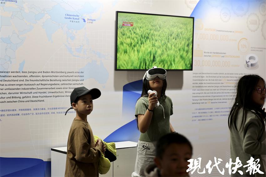 戴上VR眼镜一秒从莱茵河穿越到我国大运河……由凤凰出书传媒集团、现代快报+策划制造的“5G大运河”3D视频,招引了当地小朋友争相观看,沉溺式感触大运河之美。