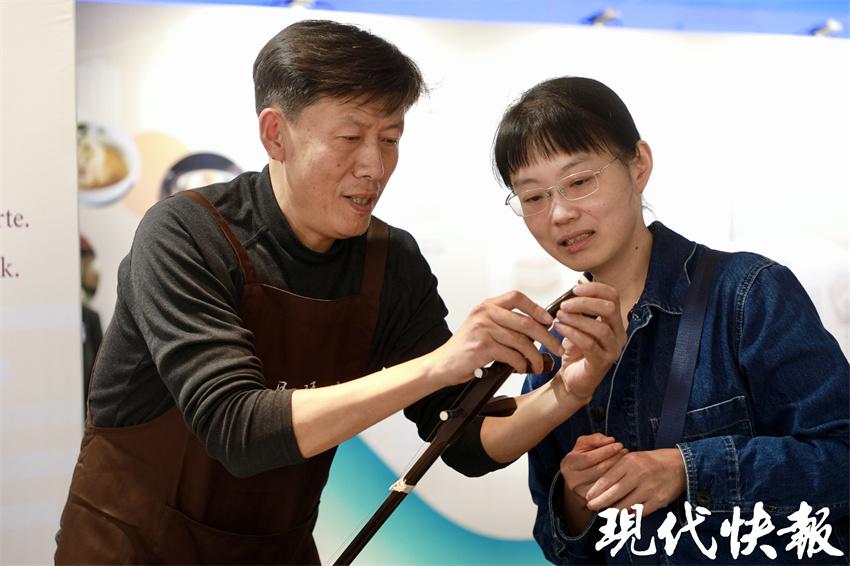 一把音色动听的二胡是怎样来制造出来的?无锡二胡制造大师卜广军向现场观众展示了制琴师的匠心技艺,不少观众拿出相机记载,向他讨教,以表达对我国传统艺术的尊重和对工匠精力的敬佩。