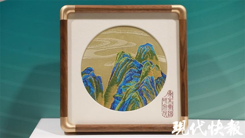 南京云锦博物馆著作《千里江山·平步青云》《六则金蟒招财》引来许多观众停步,值得一提的是,这两幅著作也是初次露脸,让德国观众大饱眼福。